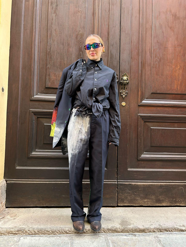 Reworked elegant pants with print
