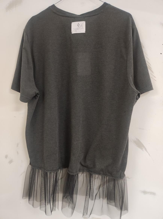 Reworked t-shirt with tulle, made with dead stock t -shirt and leftover tulle fabric. Realized with up cycling techniques, sartorial process. Unique piece. One size over fit