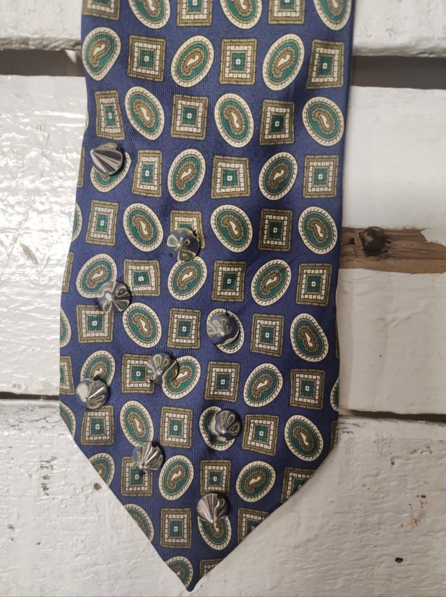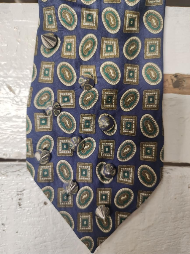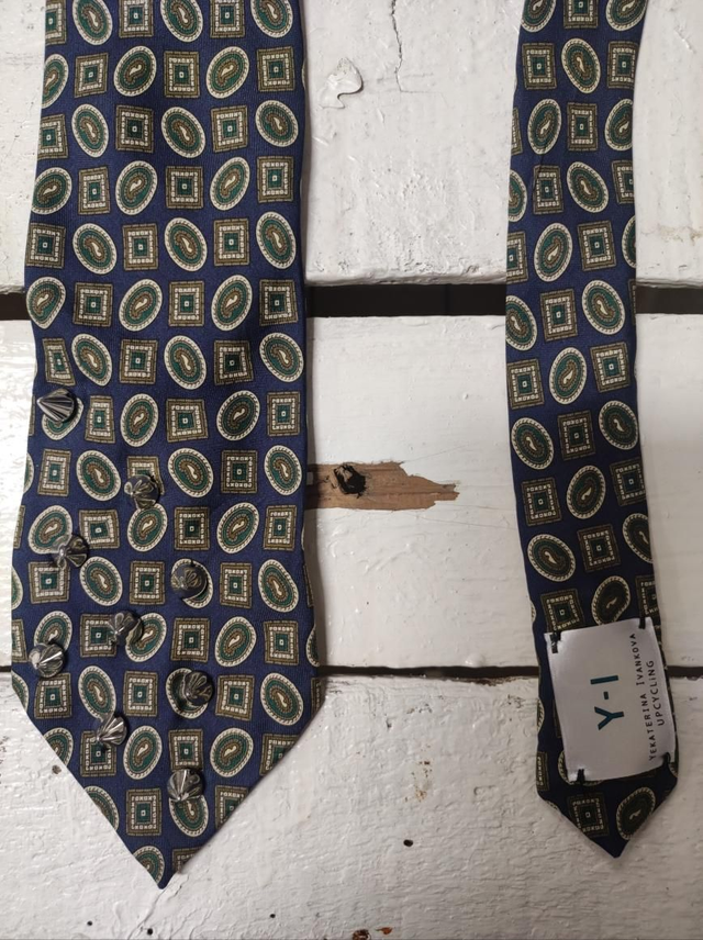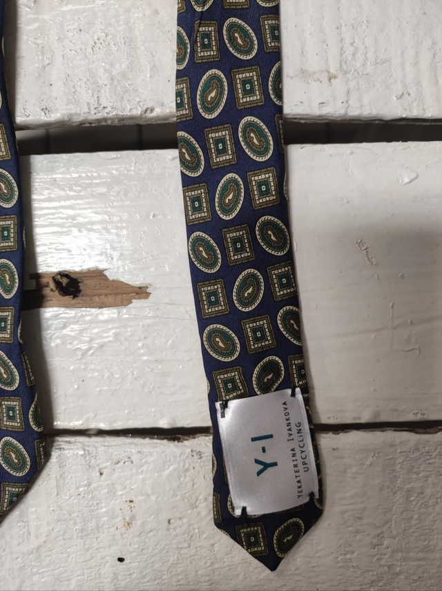 Reworked tie with handmade embroidery, made with dead stock tie. Unique piece.100%silk