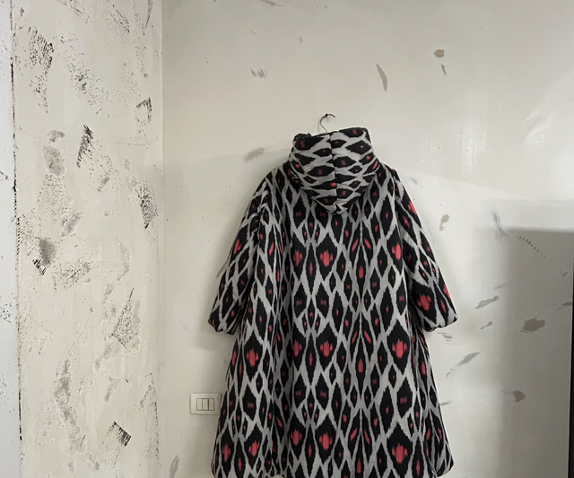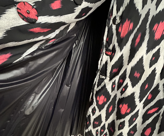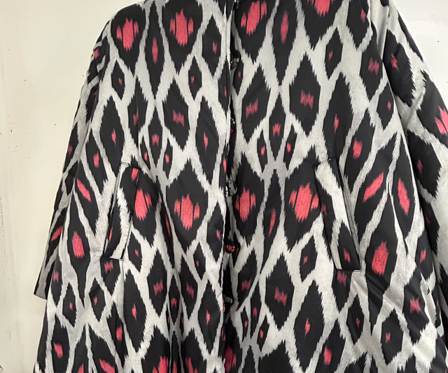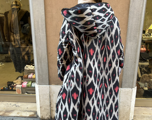 Lond down jacket, filled with synthetic down, 100% nylon, with Digital Print designed by Yekaterina Ivankova, produced in Italy